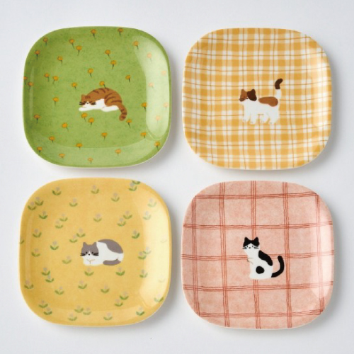Modern House L 胖貓野花竹纖維點心托盤四件組