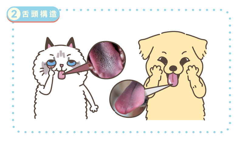 貓咪舌頭本就帶有無數小倒鉤,他不僅能梳理毛髮,還能清理身上髒污,也較不容易將口水流在皮膚上;狗狗舌頭較平滑,舔舐毛髮時會將口水留在毛髮上,導致細菌孳生引起臭味。
