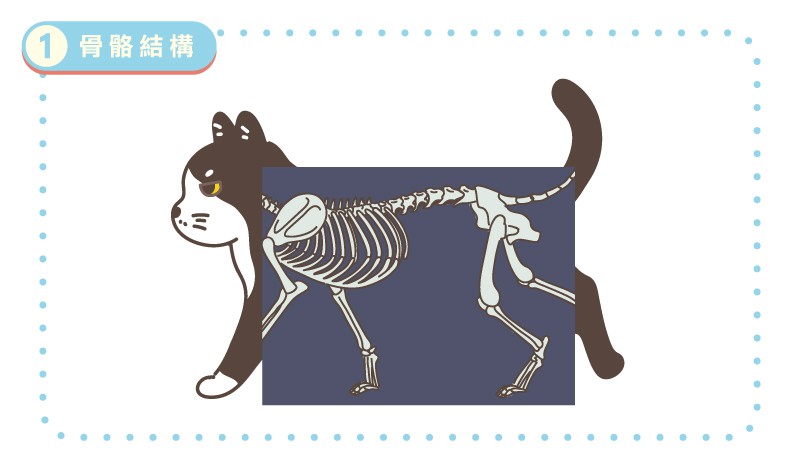 - 貓脊椎骨比人類更多,且椎骨間的關節角度較大,讓他們能更靈活伸展。