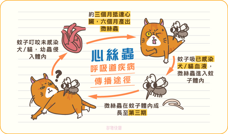 心絲蟲相關呼吸道疾病(Heartworm Associated Respiratory Disease, HARD),主要通過蚊子叮咬傳播,心絲蟲主要寄生在心臟和肺動脈,儘管貓感染心絲蟲的概率較犬低,但一旦感染,症狀通常更嚴重,甚至可能致命。
