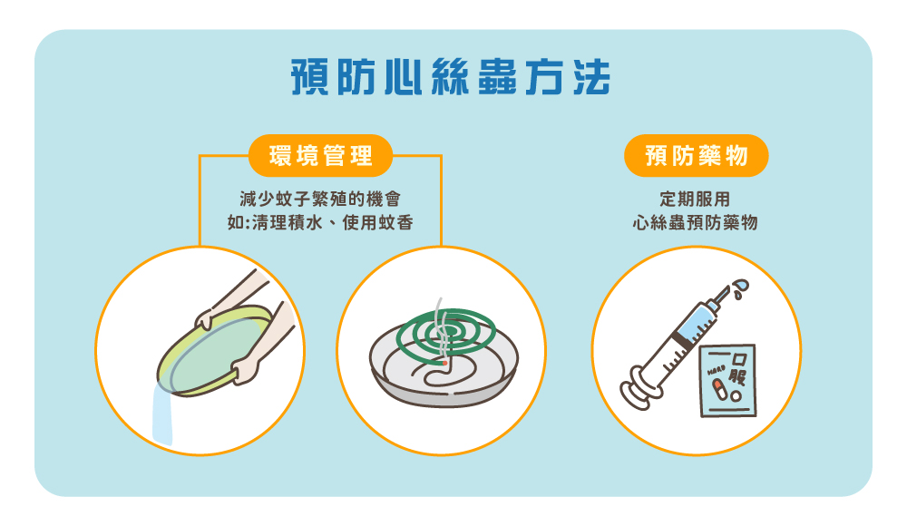 想要預防心絲蟲,須從保持環境乾爽、減少蚊子繁殖開始,並定期給寵物服用心絲蟲預防藥物。