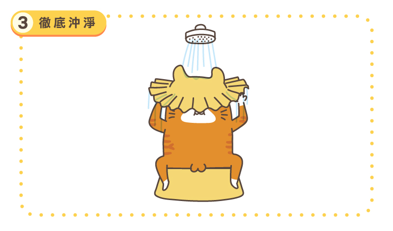 用溫水徹底沖洗掉洗毛精,確保沒有殘留物,以免刺激皮膚。