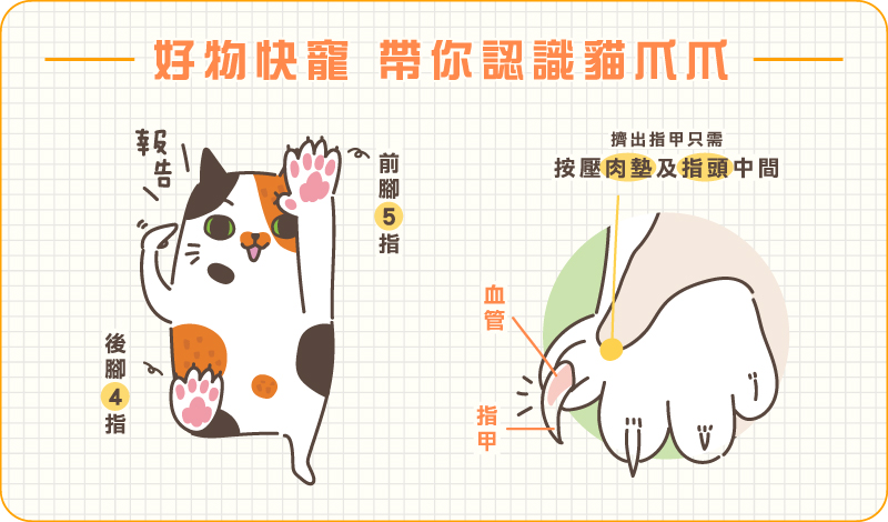 注意剪指甲應避開血管部分,並以垂直方式剪指甲,以免貓咪受傷流血、指甲爆開,會造成貓貓內心陰影,以後貓貓更不會輕易的讓你剪指甲喔!