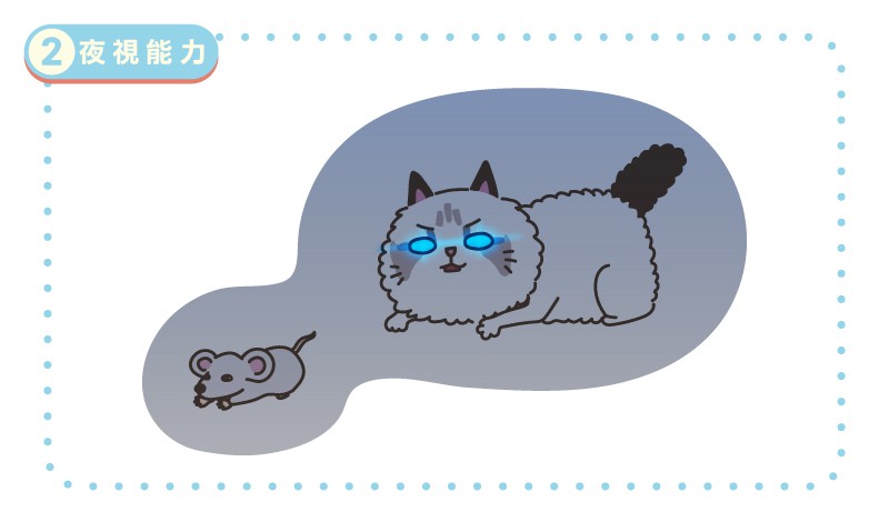 讓視網膜多次利用光線,大大增強夜視能力,這也是為什麼貓咪能夠在夜間行動自如,比人類擁有6倍以上的夜視能力!