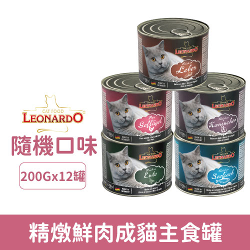 LEONARDO 里奧納多 精燉鮮肉成貓主食罐200g-綜合12罐/箱LEONARDO 里奧納多 精燉鮮肉成貓主食罐200g-隨機12罐/箱