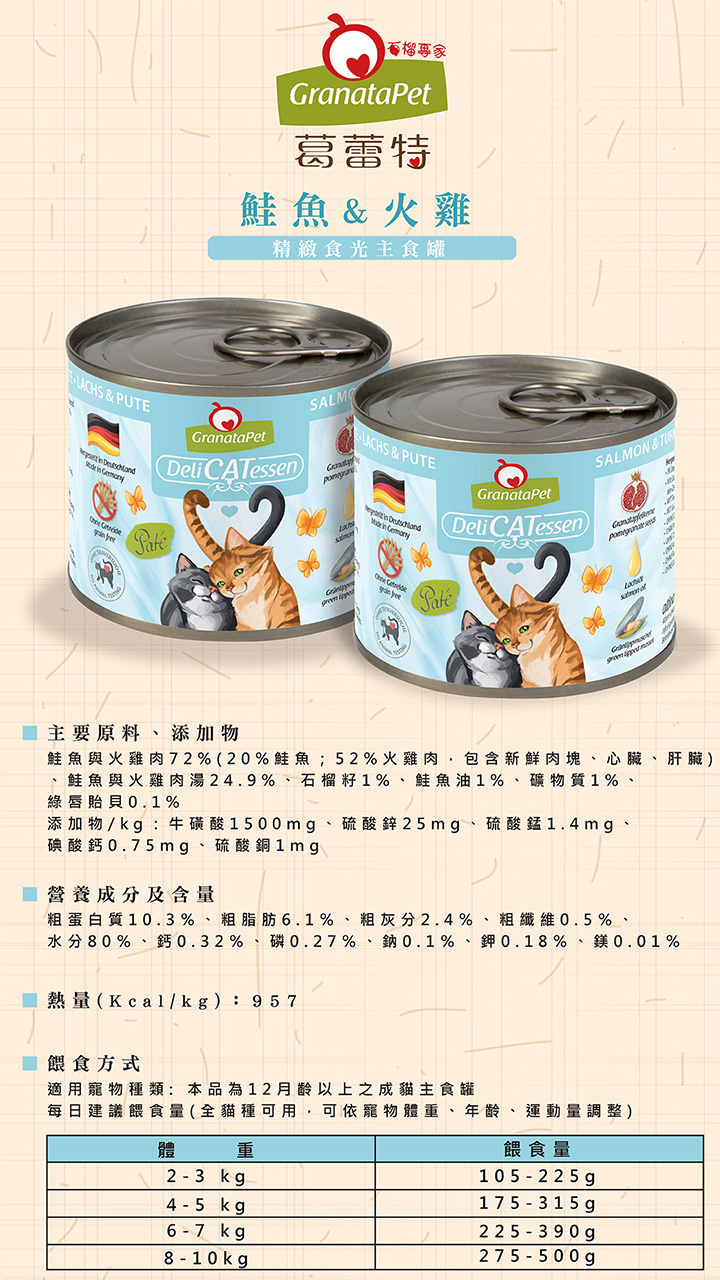 德國 Granatapet 葛蕾特 精緻食光無穀主食罐系列200g-隨機12罐/箱